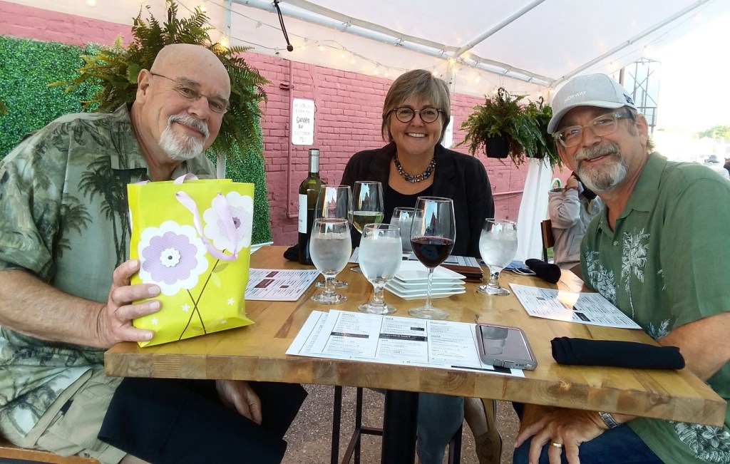[Not a perfect day – gray and quite windy (the Super had to make a diving save on her wine glass) – but a good time was had by all . . . ]