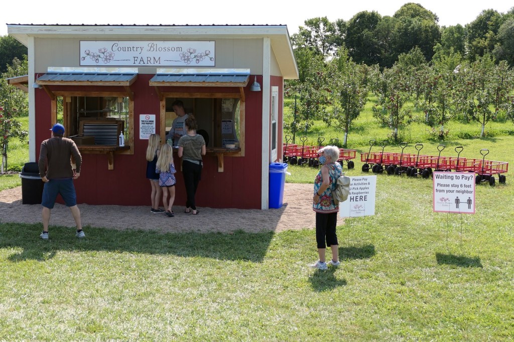 [Big orchard – lots of families came pick their own apples . . . ]
