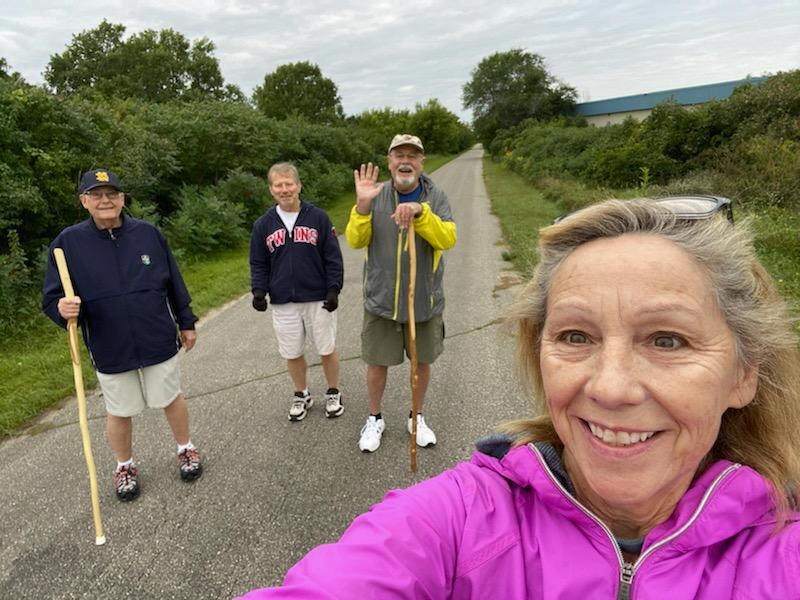 [It’s always nice when a local candidate for state office stops by for a visit as the Fat Boys Walking Club ambled along the bike trail in the wee small hours of the morning . . . ]