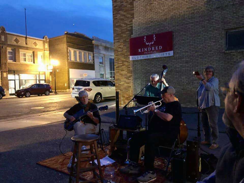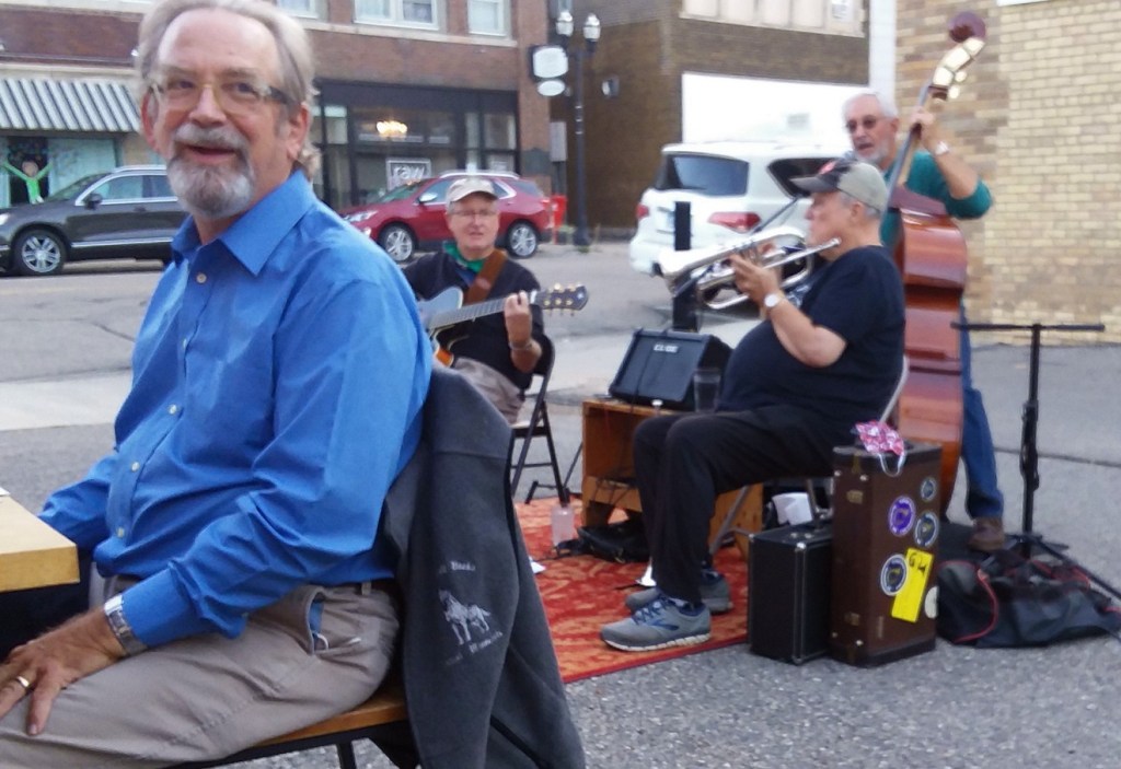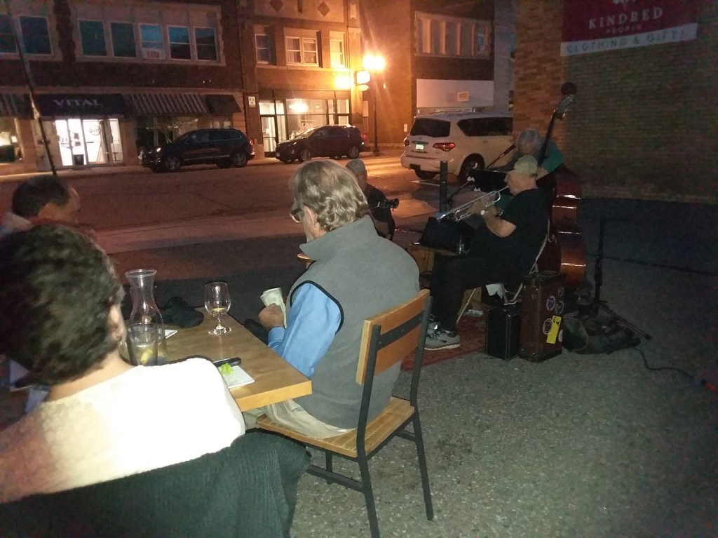 [Another wonderful evening with Terry, Bill, and Jim providing ‘music in the alley’ at the Garden Bar on 6th . . . ]