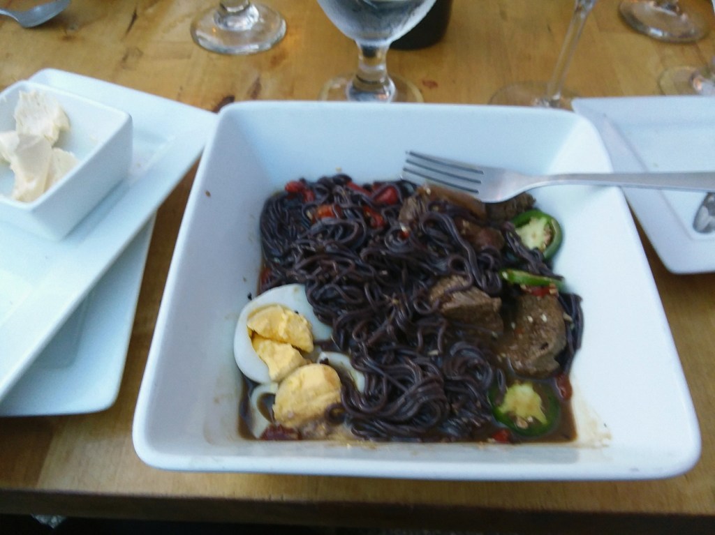 [A portion of my ramen ending up on my shirt, of course . . . ]