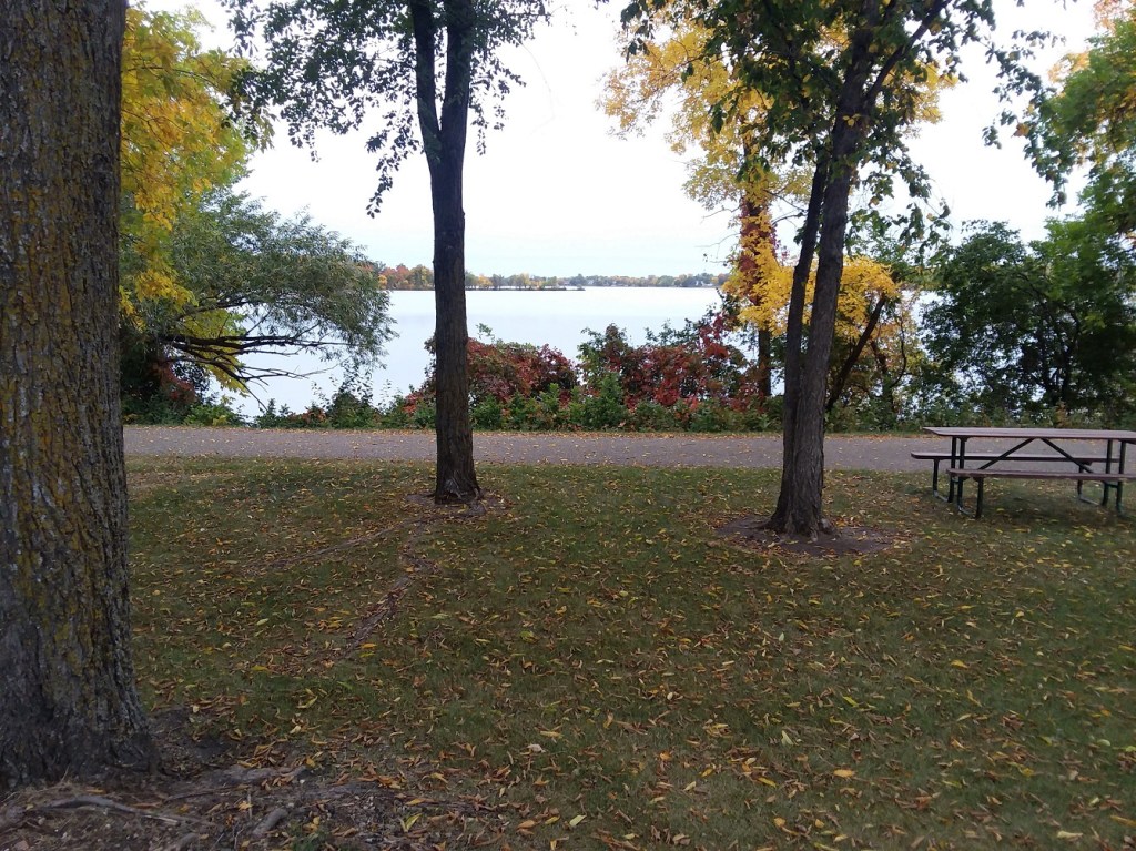 [Saturday morning, the Fat Boys Walking Club generally just consists of “Weakie” and me. This day was no exception. We enjoyed the colors of autumn along our route on the east side of Lake Agnes. But the trail is now getting heavily laden with fallen leaves . . . ]