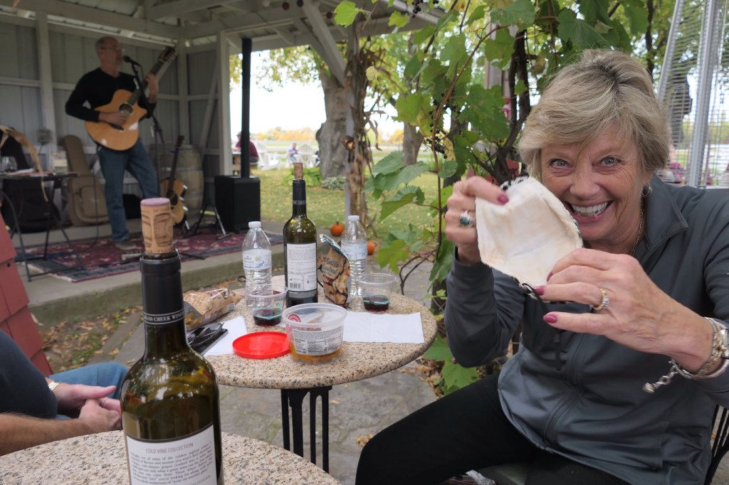 [Usual winery denizens, Anne and Warren visit with Anthony . . . ]