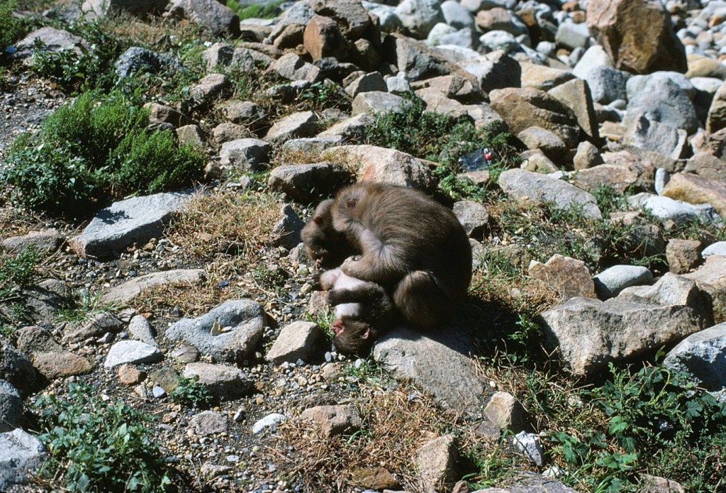 [In Nishi Izu, you can visit a park by the ocean where a troop of over 300 Japanese macaque monkeys reside. The wild monkeys play freely on their playground, groom, and feed on grains, vegetables, and fruits. Visitors can walk amongst the monkeys or feed them from behind a cage wall (en.japantravel.com).]