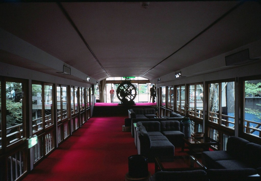 [And from the entry, you cross over the river in an enclosed bridge to the guest rooms . . . ]