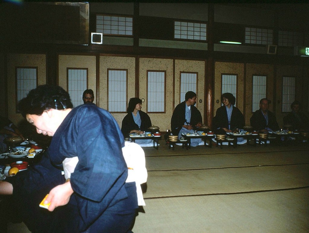 [Fine dining in the ryokan. My body was not designed for sitting on the floor . . . ]