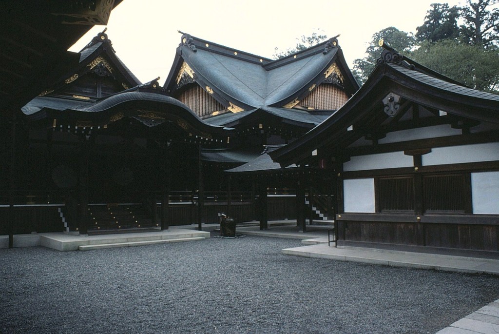 [The Ise Grand Shrine, located in Ise, Mie Prefecture, is a Shinto shrine dedicated to the sun goddess Amaterasu. Officially known simply as Jingū, Ise Jingū is a shrine complex composed of many Shinto shrines centered on two main shrines, Naikū and Gekū. The Inner Shrine, Naikū (also officially known as “Kōtai Jingū”), is located in the town of Uji-tachi, south of central Ise, and is dedicated to the worship of Amaterasu, where she is believed to dwell. The shrine buildings are made of solid cypress wood and use no nails but instead joined wood. The Outer Shrine, Gekū (also officially known as “Toyouke Daijingū”), is located about six kilometers from Naikū and dedicated to Toyouke-Omikami, the god of agriculture, rice harvest and industry. Besides Naikū and Gekū, there are an additional 123 Shinto shrines in Ise City and the surrounding areas, 91 of them connected to Naikū and 32 to Gekū (Wikipedia)].