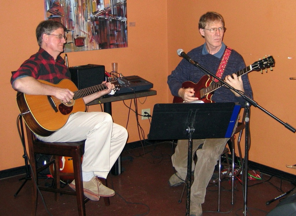 Al Lieffort, Bruce Kelly & Erik Schultz @ CCW, July 2009 (The story line: My friend, Bob Gilbert, from D.C. days, came up from his retirement home in Arizona. Whoever was scheduled to perform that day couldn’t make it. Word must have gone out on the local wire about the situation because musicians just started showing up. There wasn’t much of a crowd because no one knew they would all be performing. Bob was astonished how good they were (they were all on their A-games) and there was hardly any audience.)