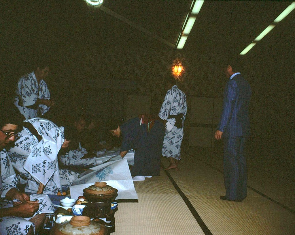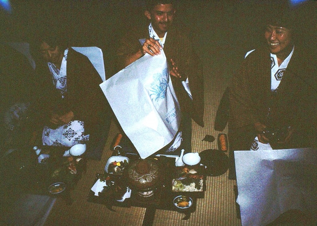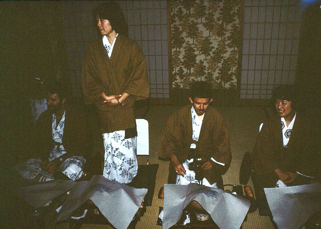 [Marsha, Roy, and Toku as we settle into another traditional Japanese dinner . . . ]