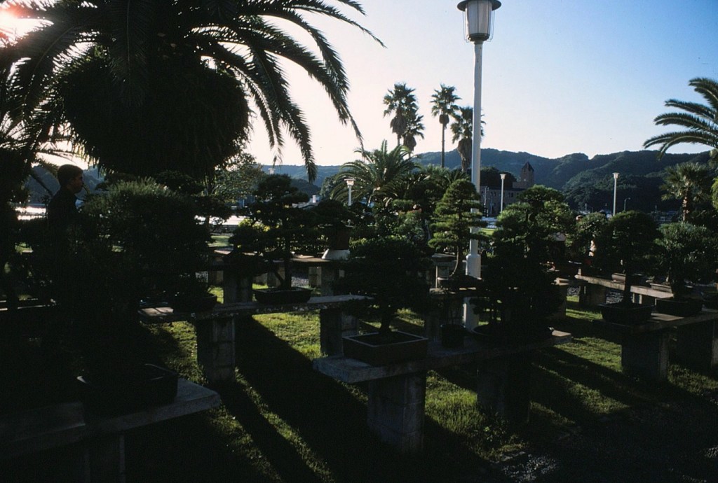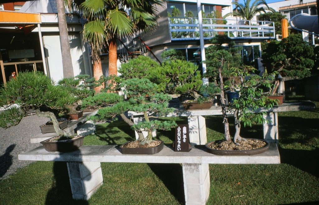 [Did I mention before that Roy (i.e., Roy-san) became a real Nipponophile after this trip, turned his backyard into a Japanese garden, and developed a fine collection of bonsai trees (as below) . . . ]