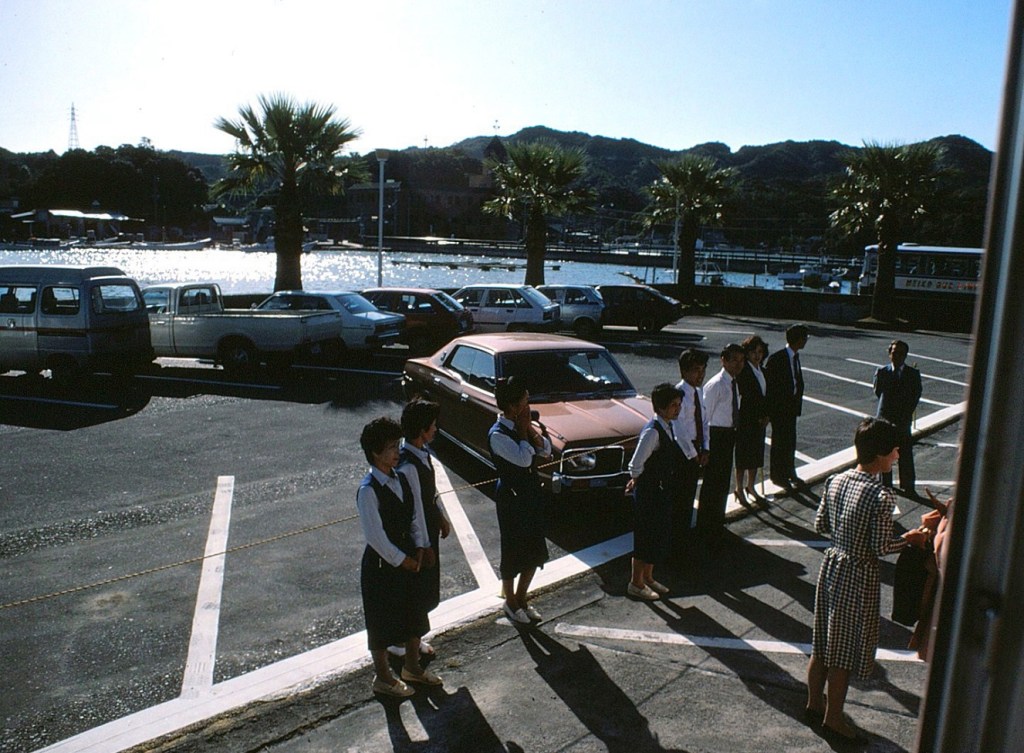 [So typically Japanese, the staff from the hotel come out to say sayonara to tour groups . . . ]
