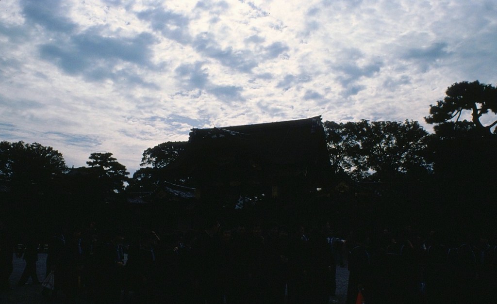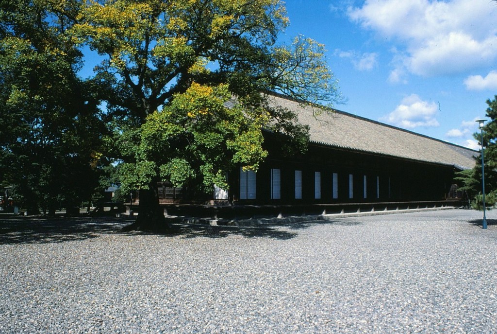 [The actual shrine grounds themselves are very spacious, with a wide open court at the center. The shrine’s main buildings are a partial replica of the original Imperial Palace from the Heian Period, built on a somewhat smaller scale than the original (japan-guide.com).]