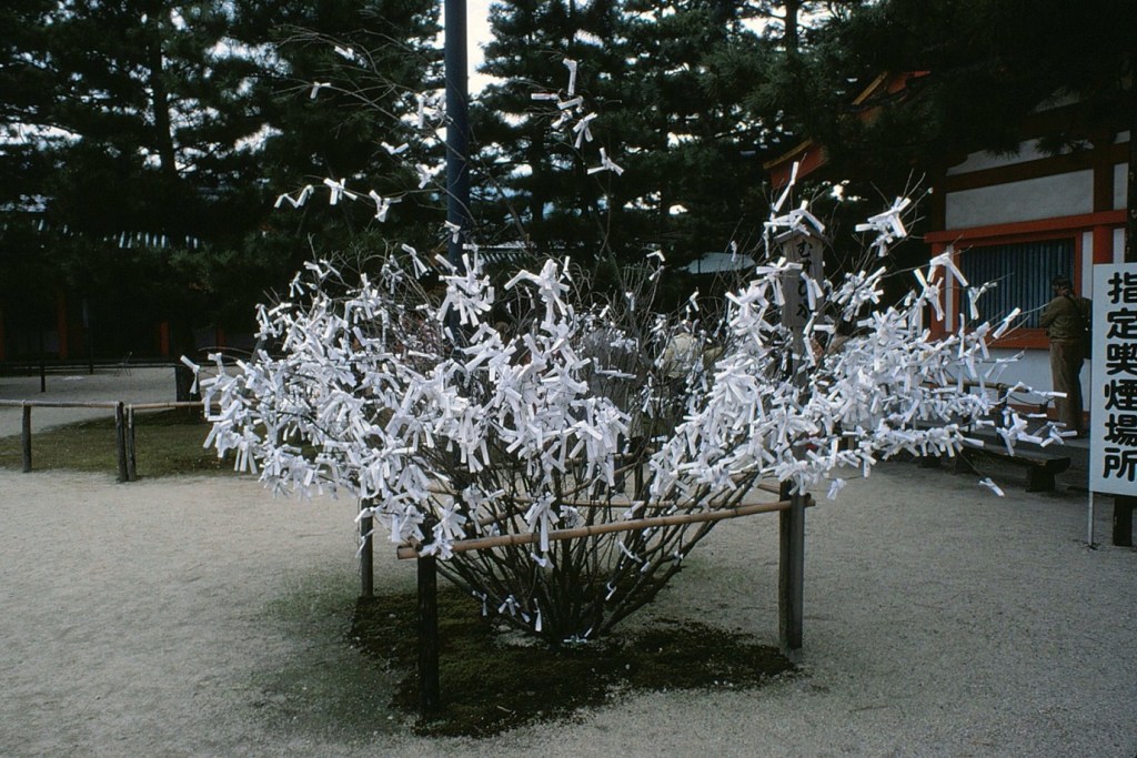 [The temple complex includes several other shrines, among them the Jishu Shrine, dedicated to Okuninushi, a god of love and “good matches”. Jishu Shrine possesses a pair of “love stones” placed 10 meters (30 feet) apart, which lonely visitors can try to walk between with their eyes closed. Success in reaching the other stone with their eyes closed implies that the pilgrim will find love, or true love. One can be assisted in the crossing, but this is taken to mean that a go-between will be needed. The person’s romantic interest can assist them as well (Wikipedia).]