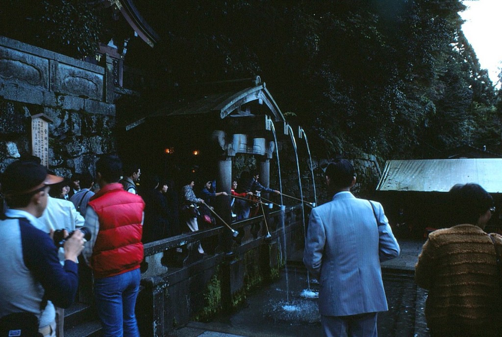 [‘Otowa-no-taki,’ the waterfall where visitors drink for health, longevity, and success in studies (Wikipedia).]