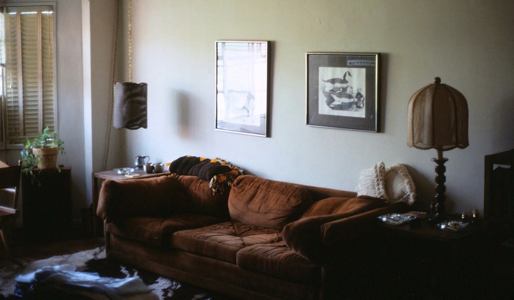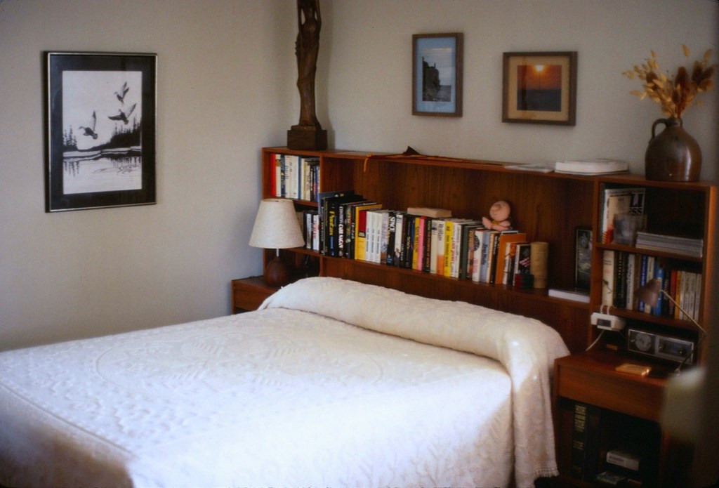 [Above obviously was the nice sized bedroom, below my living room with bay windows. Its concession to its age was that it had old-fashioned radiator heat on which I placed empty pot pie tins full of water for humidity . . . ]