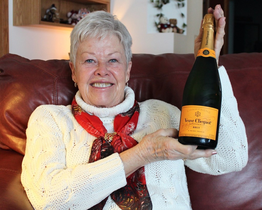 [We thought a bottle of Carlos Creek wine an appropriate present since she has been performing here for 10 years . . . ]
