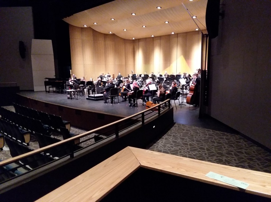 [The Central Lakes Symphony Orchestra, a winter jewel for the area’s non-snowbirds, in the Alexandra Area High School Performing Arts Center . . . ]
