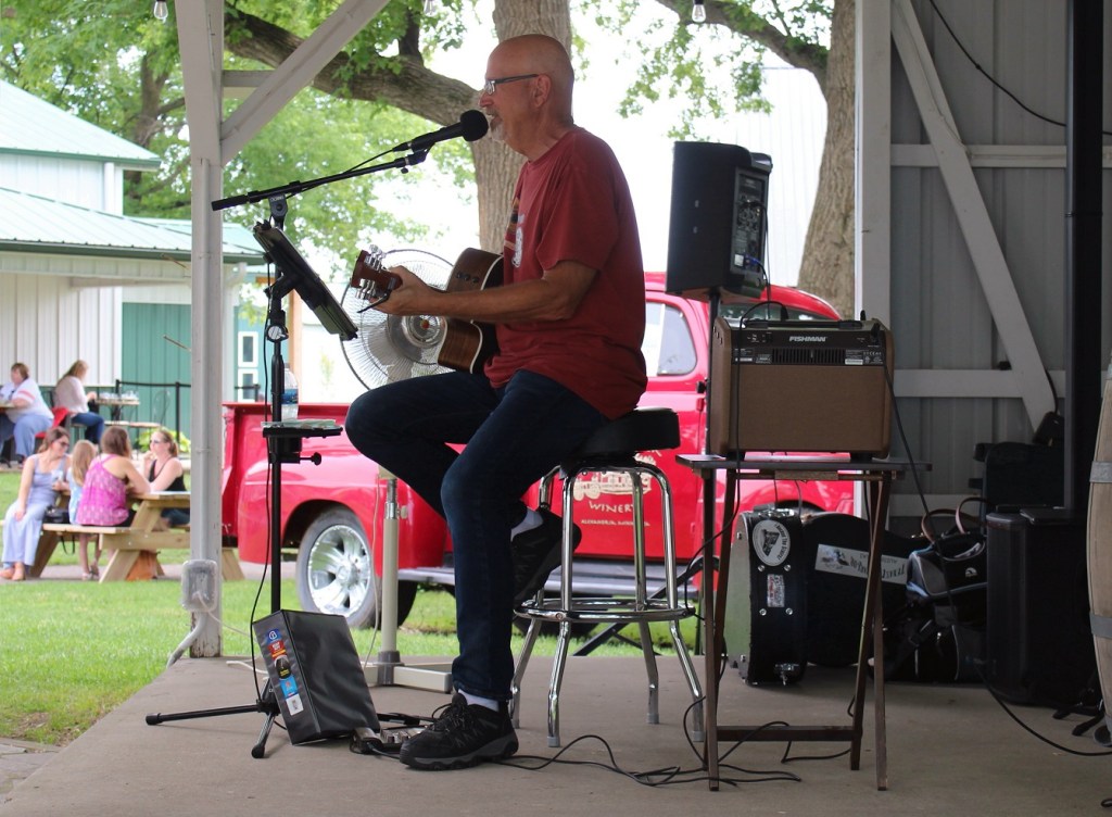 [Erik Schultz at Carlos Creek Winery. As the pandemic kept becoming a more worrisome issue here in the heartland, the Salty Dogs were reduced to solos by Erik . . . ]