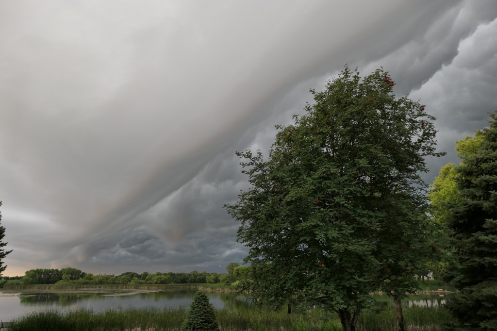 [The sky over Lake H2Obert on August 12; two days later the Super and I went to our 10×10 basement shelter for the first time in 19 years . . . ]