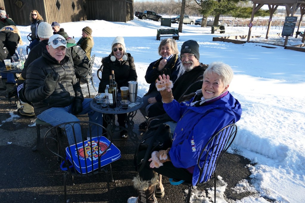 [Carlos Creek Winery, 20-degree weather, plenty of snow, bon fires, plenty of wine, beer, and soft pretzels, a whole mess of close personal friends we couldn’t see much in person in 2020. What better way to spend a couple hours on a January day in Minnesota?]