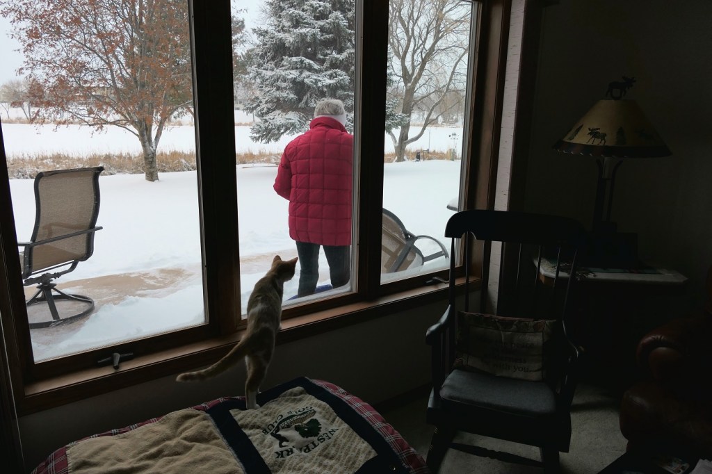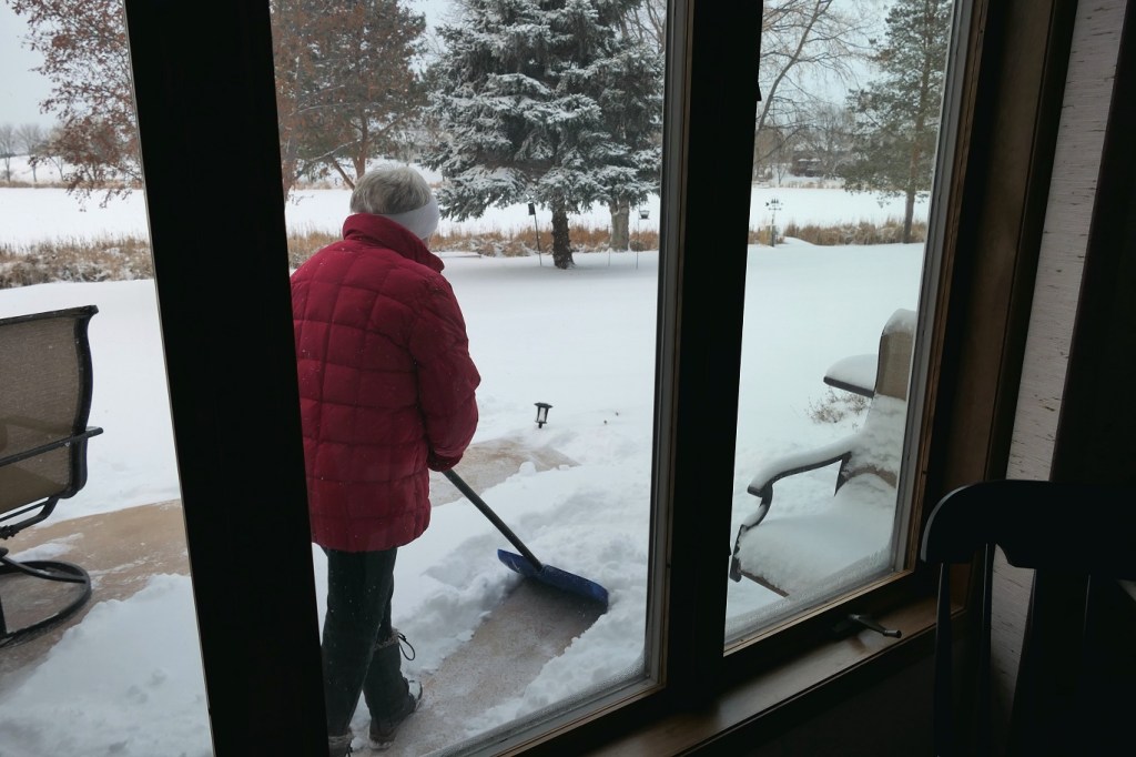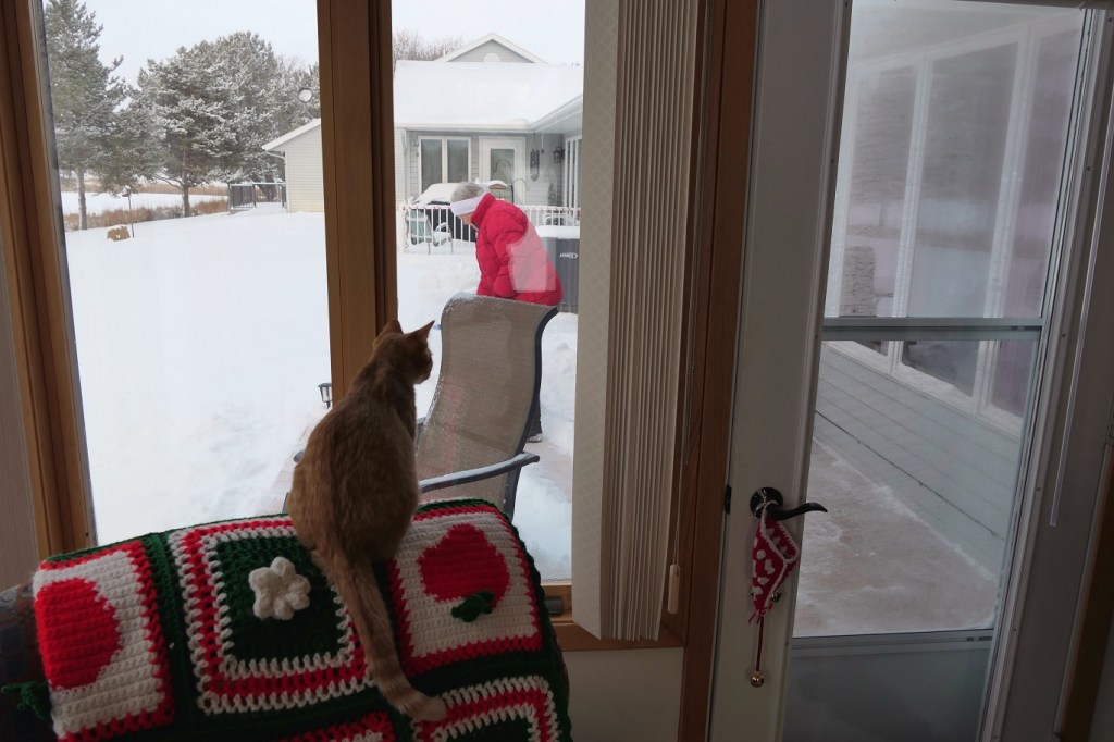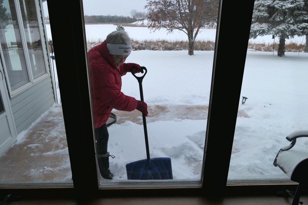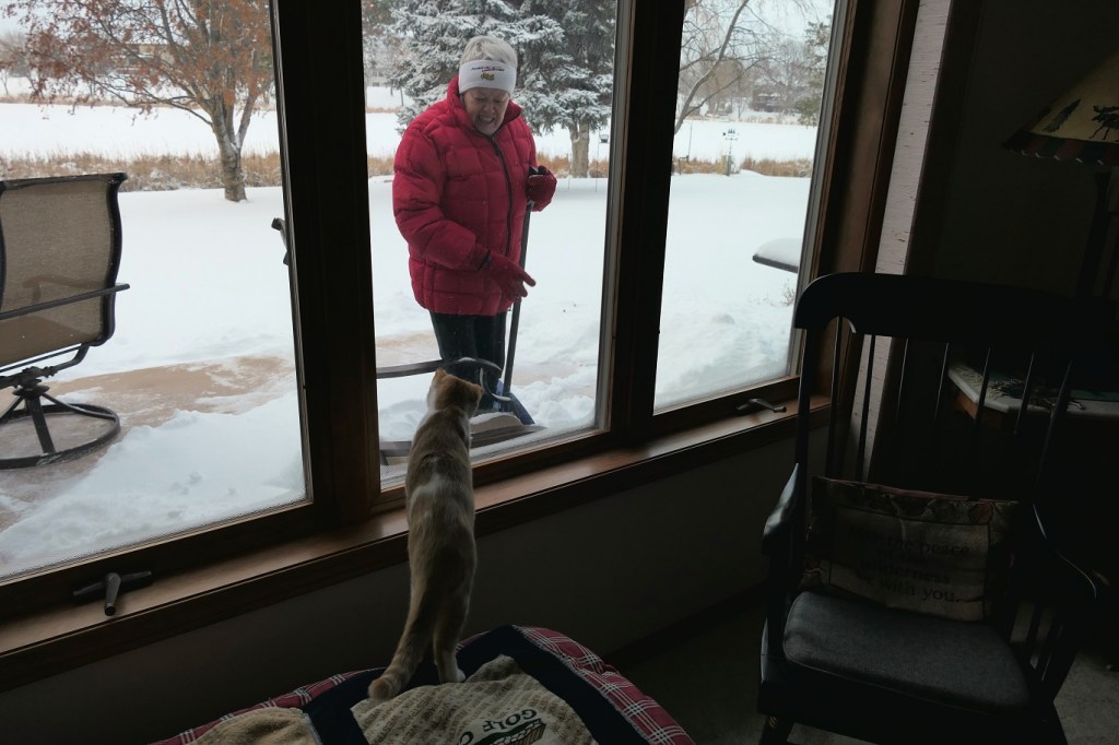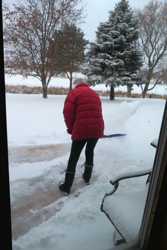 [Laddie wanted to see Mom shoveling snow . . . ]