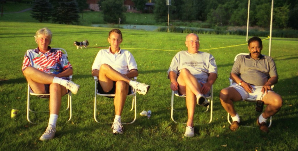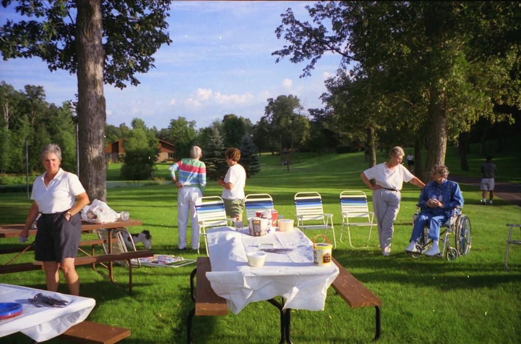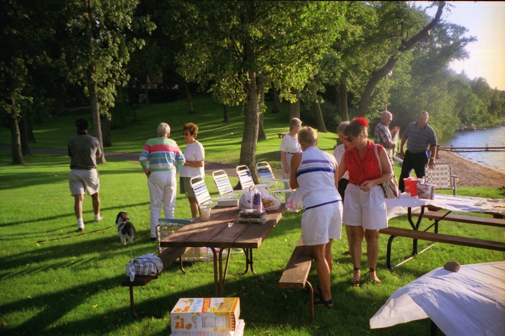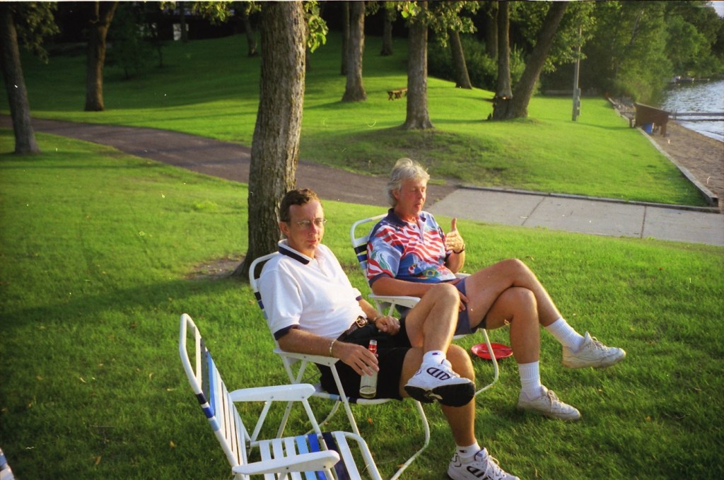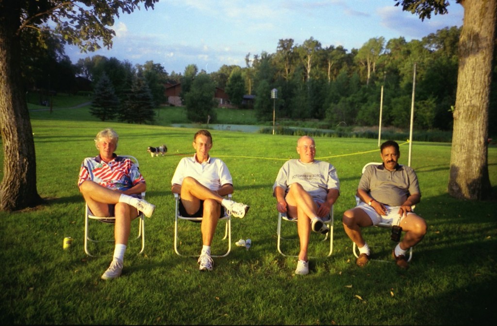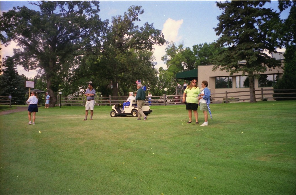 The summer of 1999. The Super and I were still working and living in D.C. We took our summer vacations in Alex with free lodging at Mom’s on Lake Le Homme Dieu. With high school classmates Greg Johnson and Tom Kiehne, we came to play in the Resorters Tournament at the Alexandria Golf Club. Their families joined the festivities for a picnic on Mom’s lakeshore. Cousin Barb Arrell, a winner of the Resorters, was there with her mom Shirley. Sister Gretch and brother-in-law Mohamed were also in town from D.C. A good time was had by all. I am not aware of any nuisance complaints filed with the local constabulary . . .