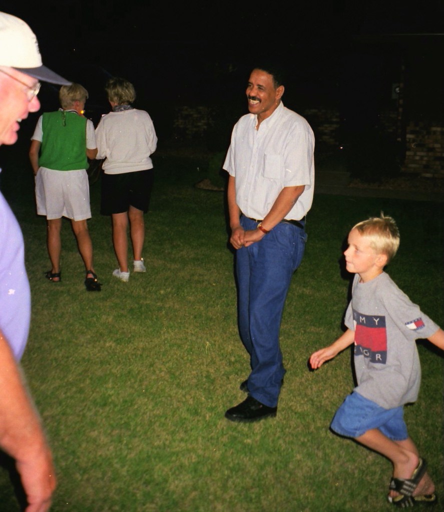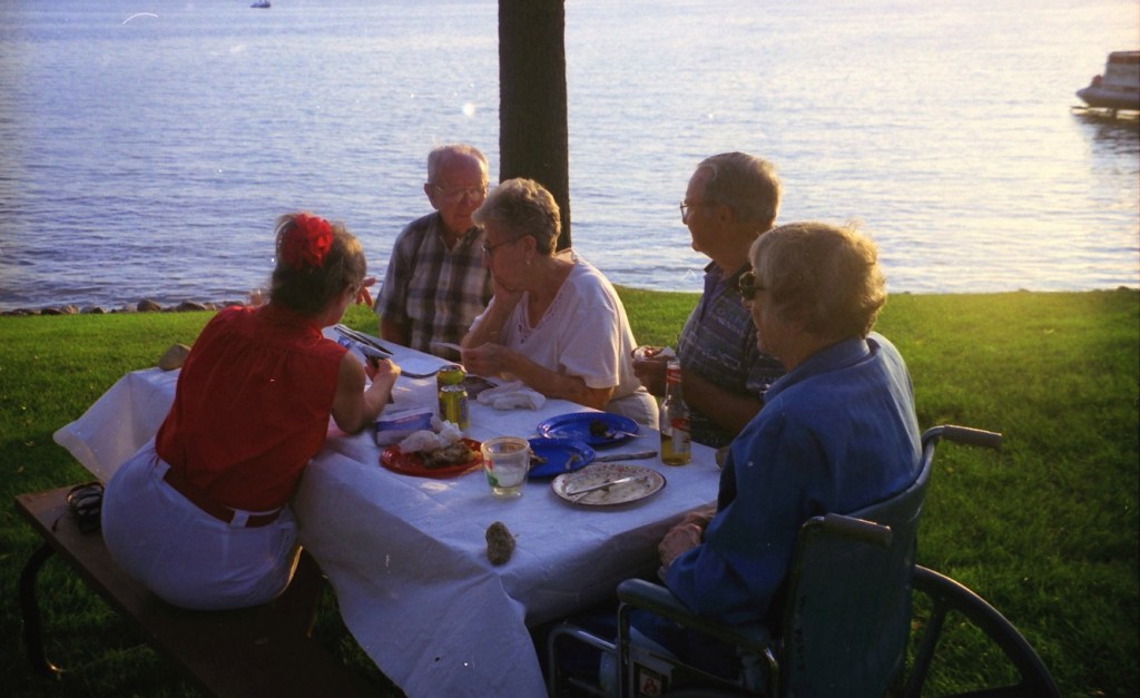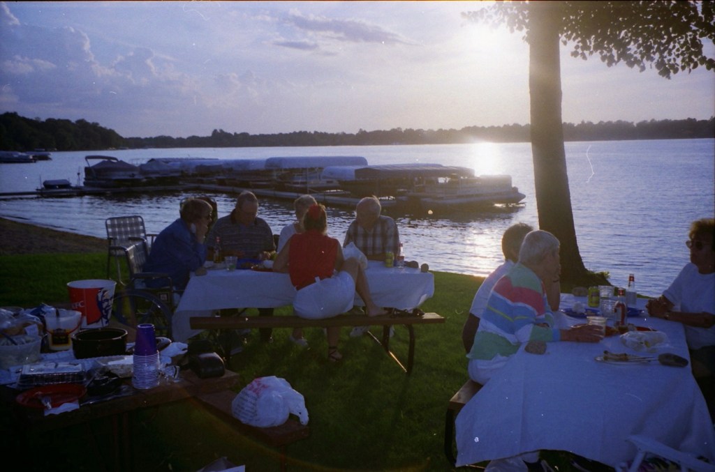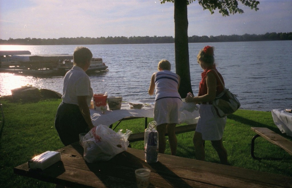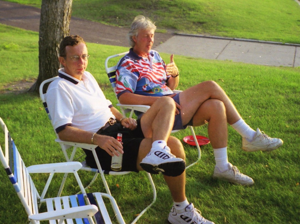 The summer of 1999. The Super and I were still working and living in D.C. We took our summer vacations in Alex with free lodging at Mom’s on Lake Le Homme Dieu. With high school classmates Greg Johnson and Tom Kiehne, we came to play in the Resorters Tournament at the Alexandria Golf Club. Their families joined the festivities for a picnic on Mom’s lakeshore. Cousin Barb Arrell, a winner of the Resorters, was there with her mom Shirley. Sister Gretch and brother-in-law Mohamed were also in town from D.C. A good time was had by all. I am not aware of any nuisance complaints filed with the local constabulary . . .