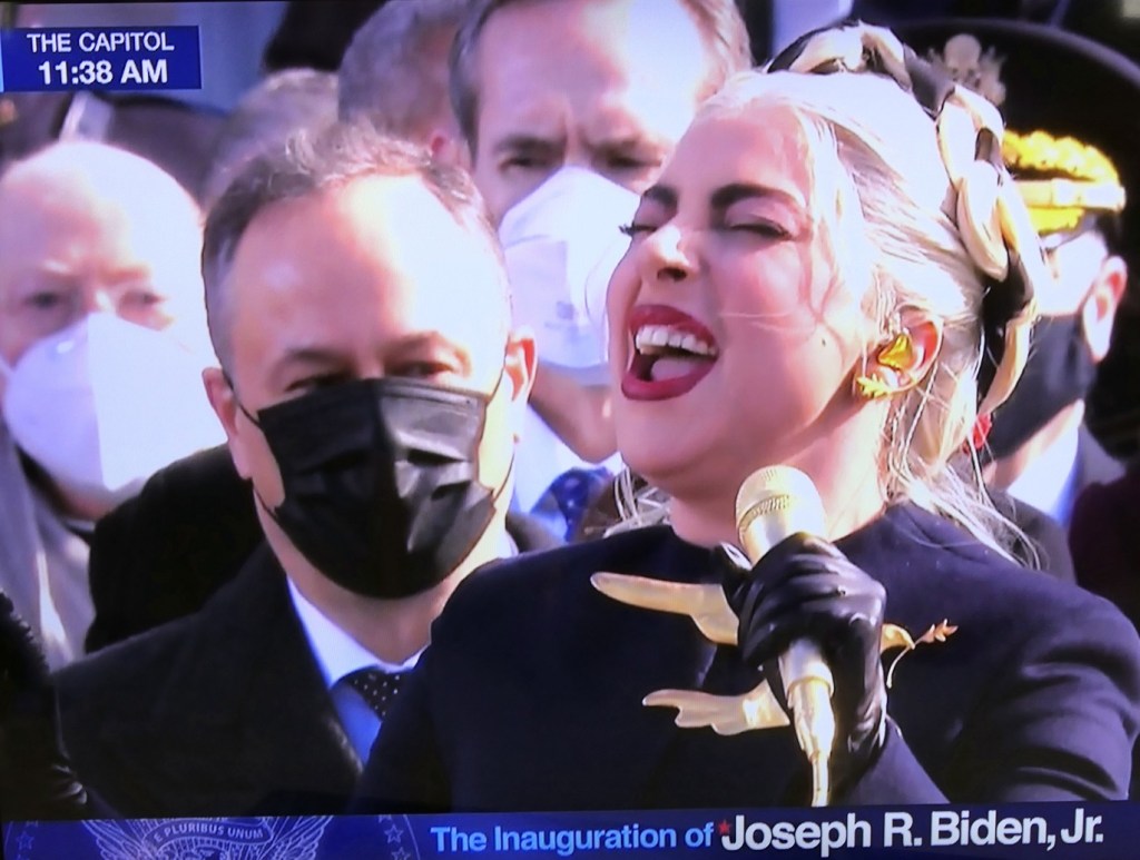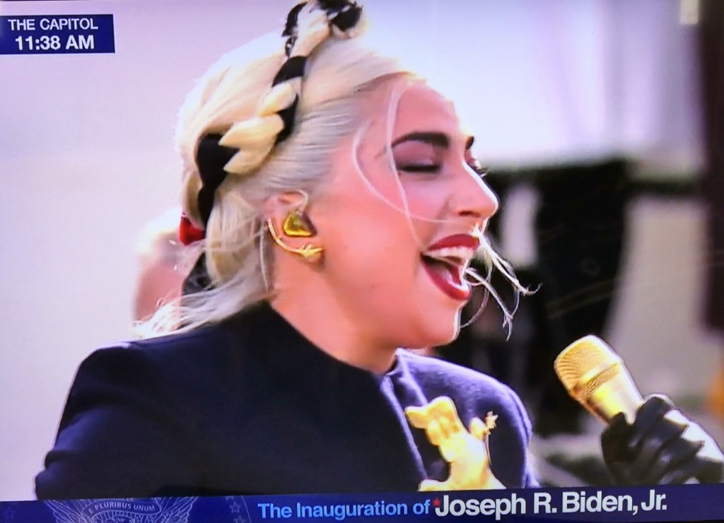 [Of course Lady Gaga hit a grand slam with the National Anthem (my TV photo) . . . ]