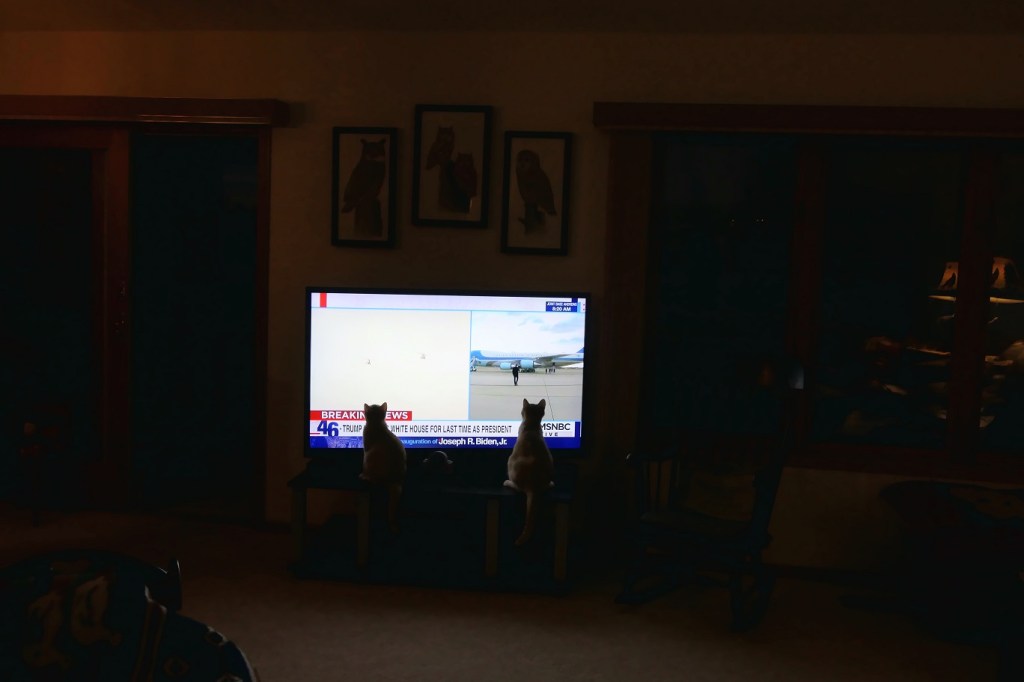 [Guinevere and Galahad, a/k/a, The Tasmanian Devils, resting up for the big inauguration day to follow . . . ]