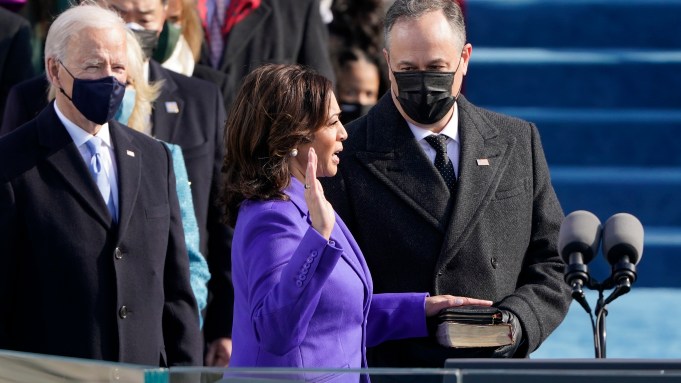 [I was otherwise engaged when Vice President Harris took the oath. Accordingly, these photos of her were pilfered from the internet . . . ]