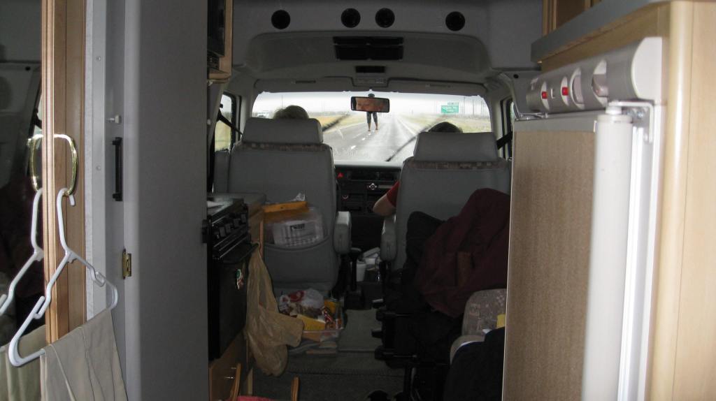 [From the rear of Rita’s cute little, handy-dandy VW RV . . . ]