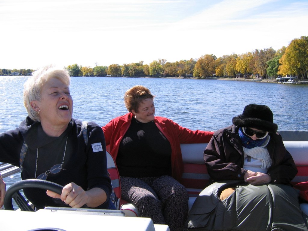 [Ruthie, her sister Faith, and her Mom on a Moby Obie cruise of beautiful Lake Darling. This was Janella’s last visit to Alexandria . . . ]