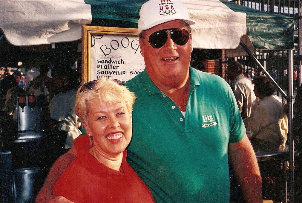 [In 1992, the Super with close personal friend Boog Powell at the new Oriole Park at Camden Yards. The first remake of the classic ball parks. We had partial season tickets for a few years. We loved the place . . . ]