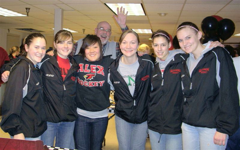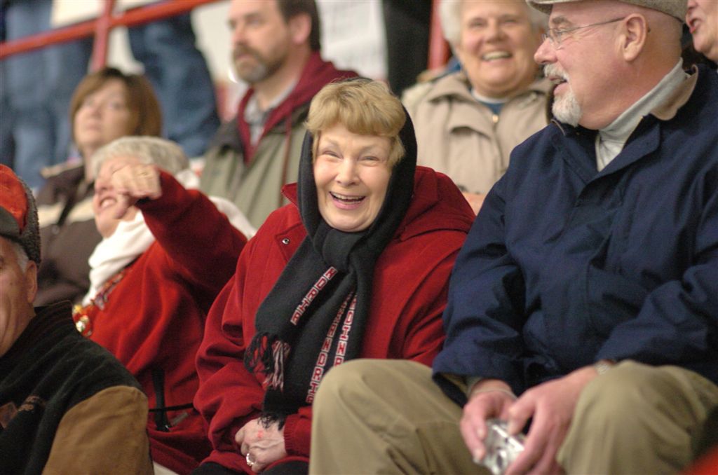 [The Super became a real girls hockey fan on this night. One of the great games of all time, the Super cheering our Cards section title winning goal against dreaded, big city, private school, Totino Grace, in 2OT’s . . . ]