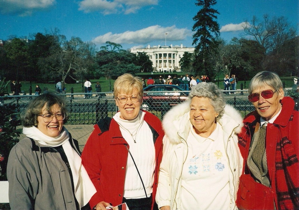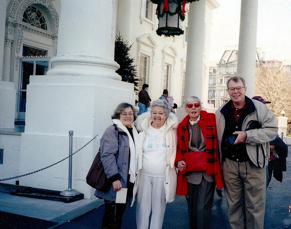[With The Biddies (Ruthie’s sister Rita and mom Janella, and my mom, Natalia) at the White House in 1997 . . . ]