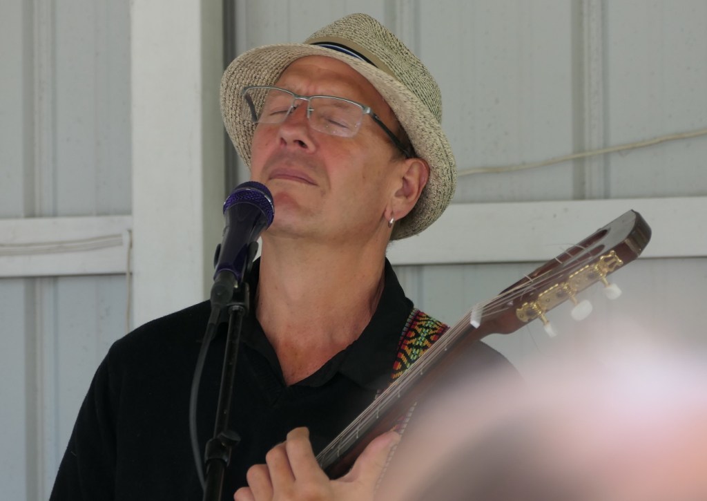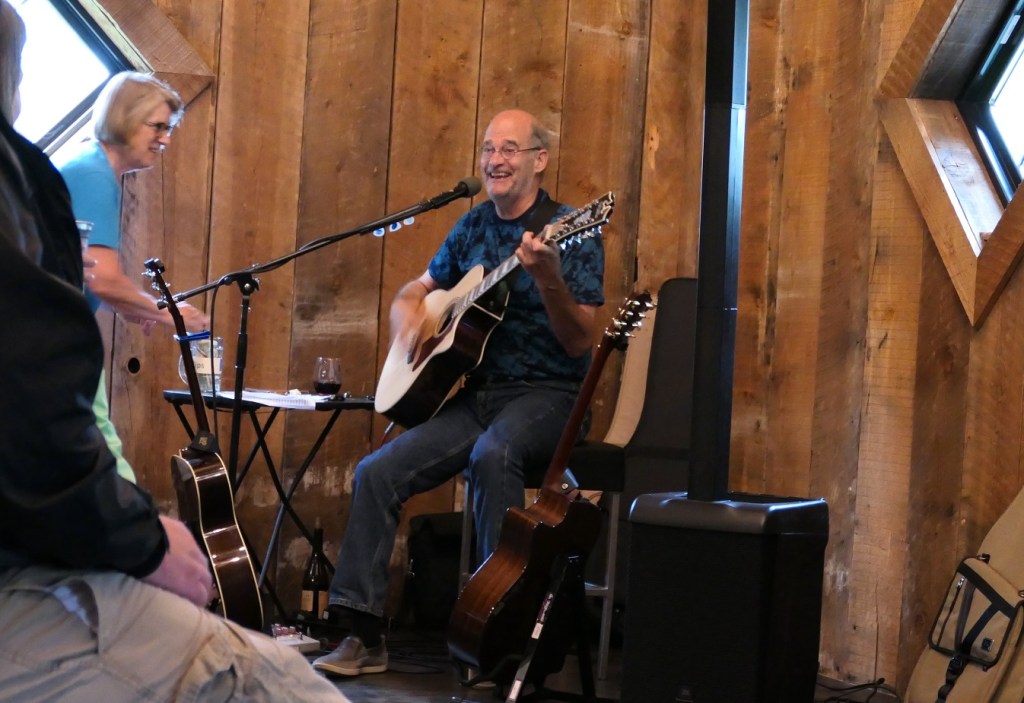 [It rained Sunday (and the ducks flew south, how many shingles are on the dog’s house?). Father’s Day. We really needed it, but it messed up a lot of holiday plans. Our friend Anthony was performing the winery, generally an outside venue. But, the brewery is where he was . . . ]