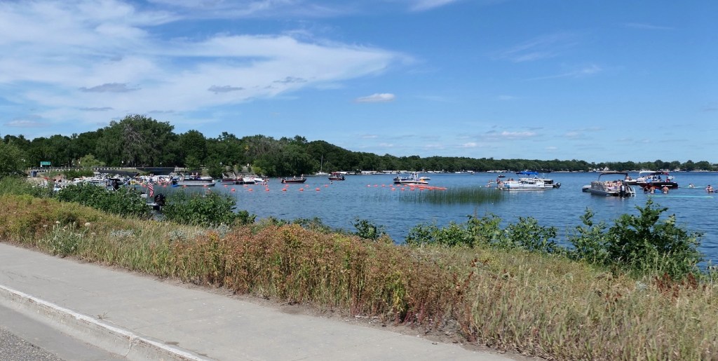 [The beautiful afternoon weather created record crowds at Rotary Beach . . . ]