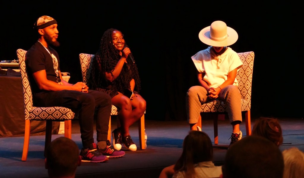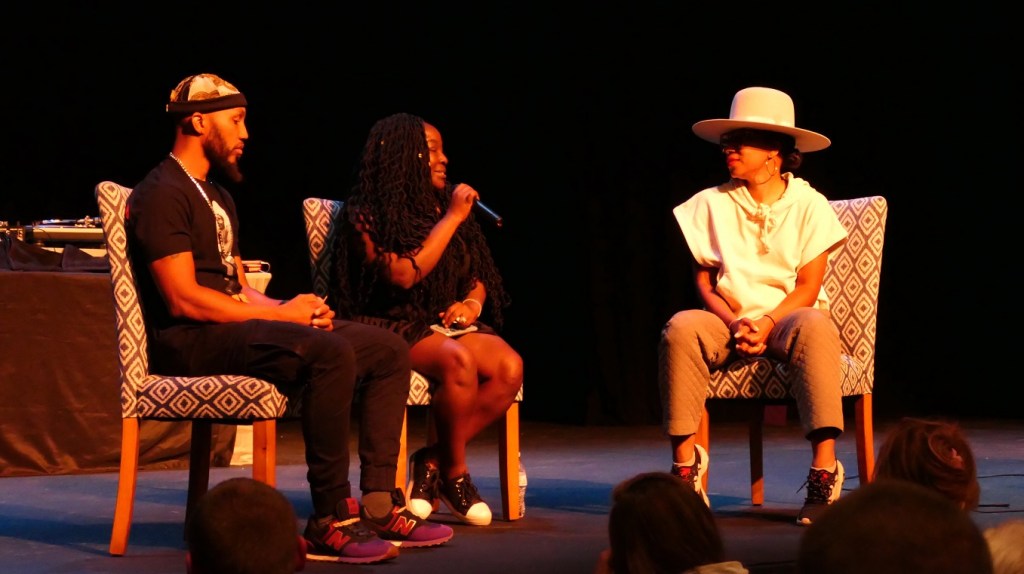[The panel discussed much that was new to me, and I’m sure to many in the audience, about things Juneteenth and the music of The Reminders. Aja explained that hip-hop and rap originated in the neighborhoods of the Bronx when the school systems eliminated the arts from the curricula to concentrate on STEM programs. It was very interesting . . . ]