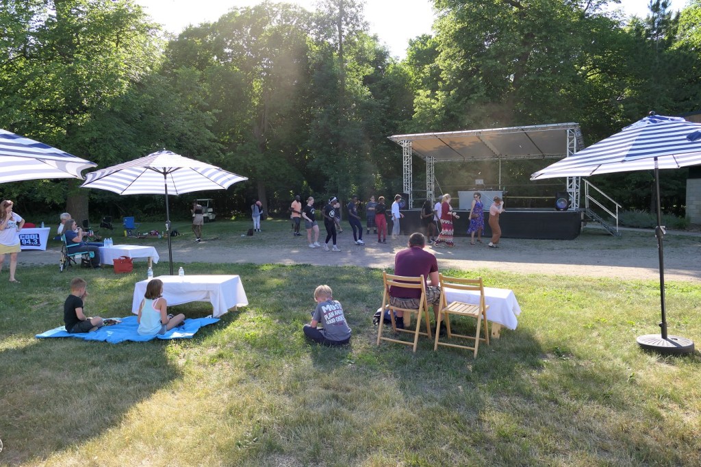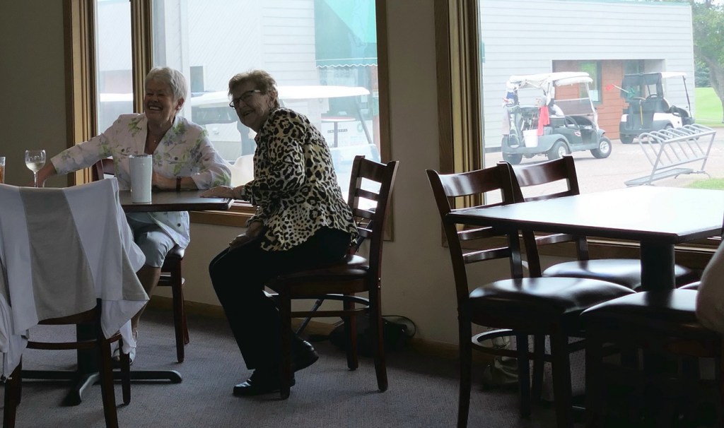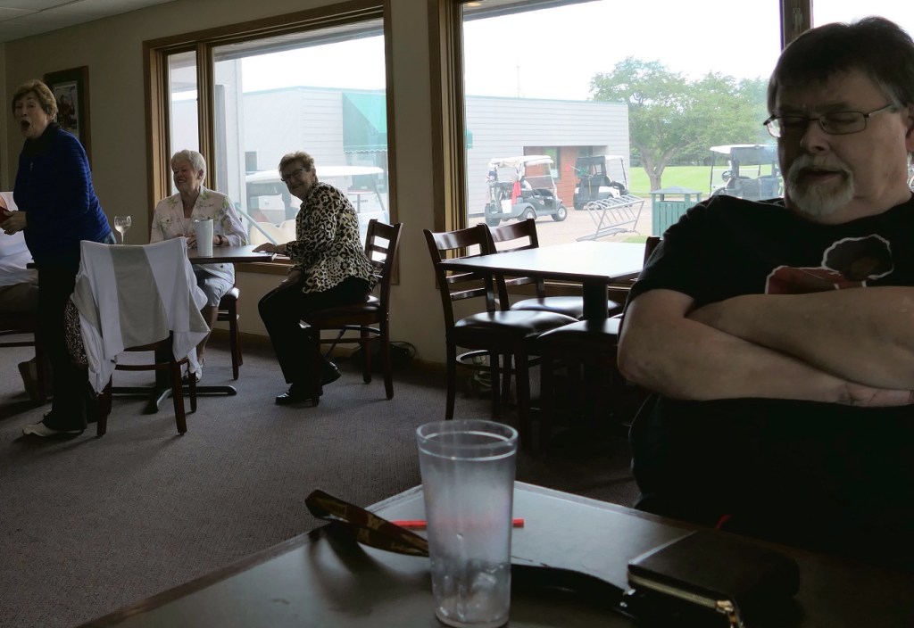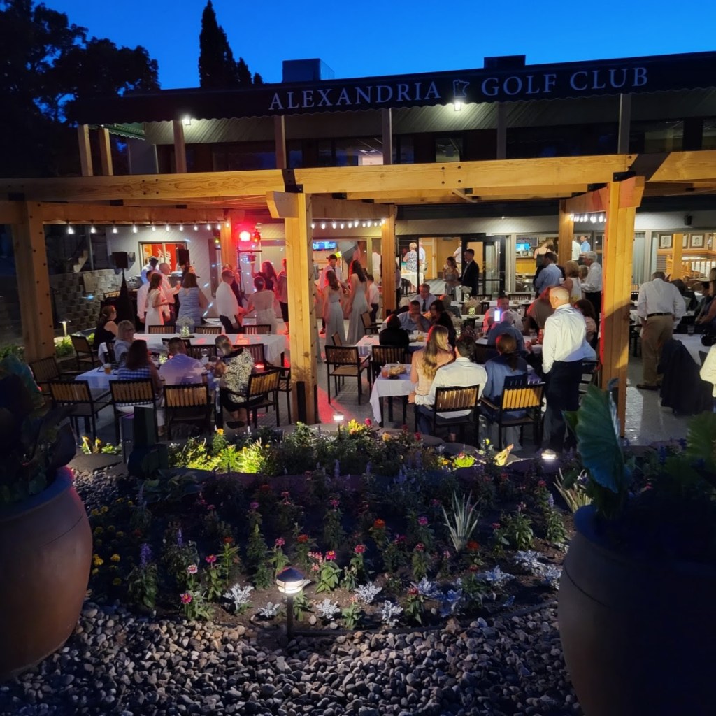 [And then past the wedding party premiering the new patio at the Alexandria Golf Club.]