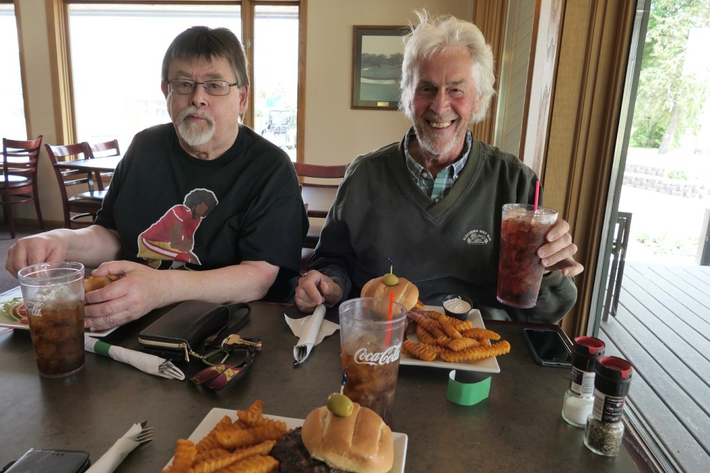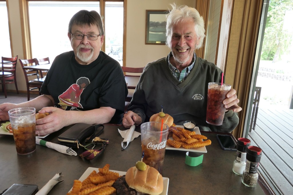 [Here’s Bradley reprising his cameo at the top of this monologue. It’s our monthly nosh-out for three (four, when he’s in state) members of the Alex Class of ’65. We’re at the Alexandria Golf Club . . . ]