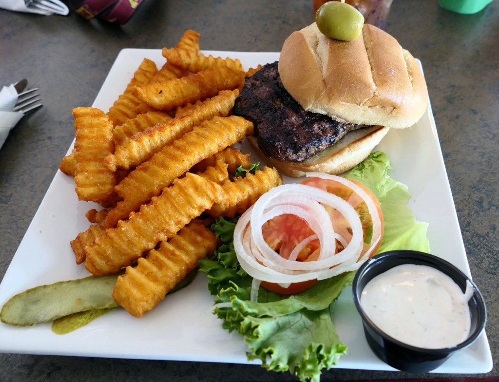 [All enduring the classic high school boys’ diet plan: Burger, fries, and a coke. Mayo ordered a side order of everything to go on his burger . . . ]