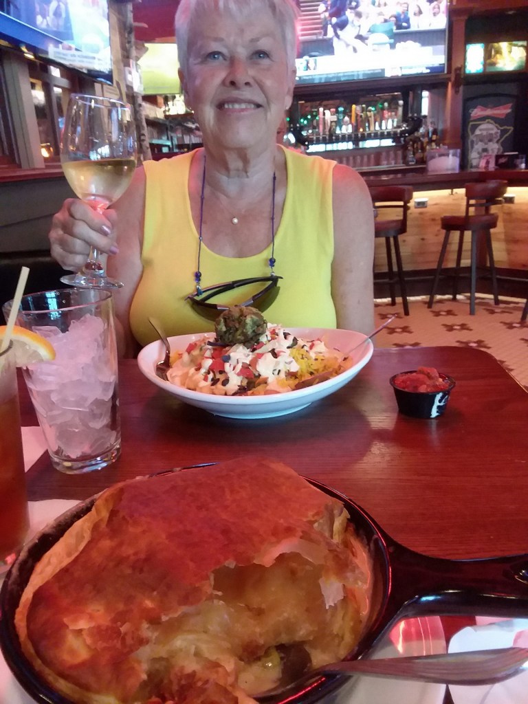 [Getting an early start (because holidays are all about eating), the Super and I used her pandemic OK’ed coupon for dinner at D. Michael B’s. Still the best menu in town, and our after Senior College classes go to place for a nosh and a beverage . . . ]