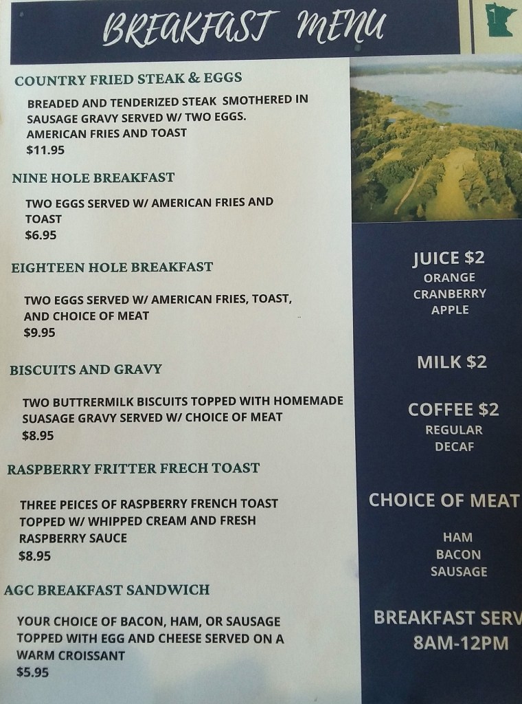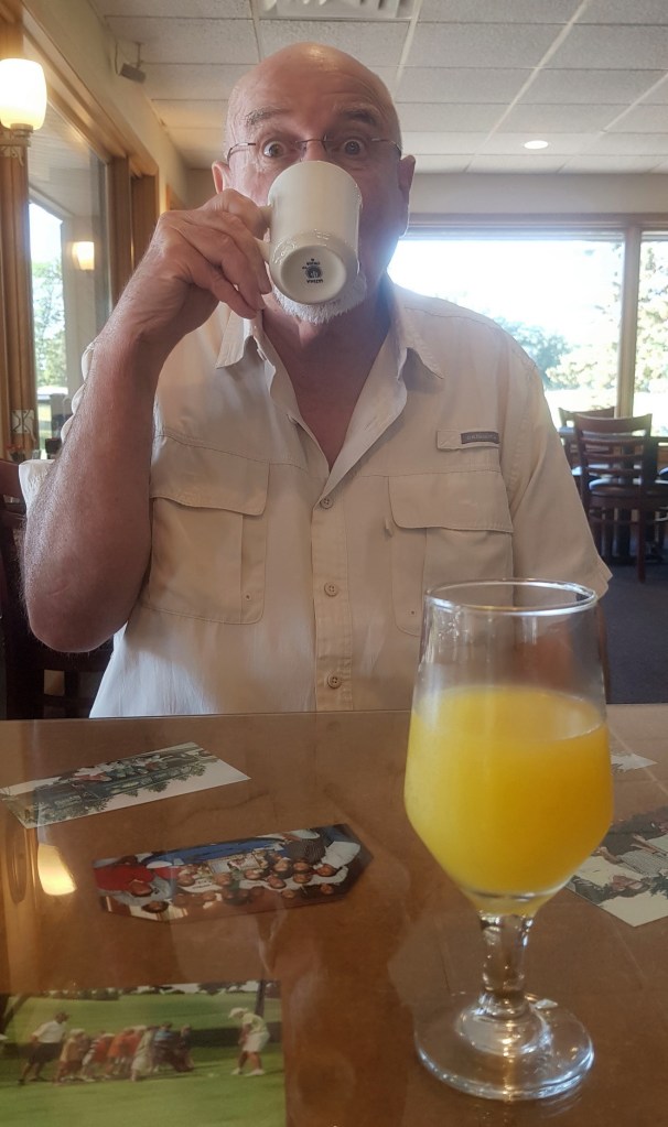 [Again, it comes back to eating. The Super and I had the Alexandria Golf Club dining room all to ourselves for breakfasts that fed us for the next two meals back home . . . ]