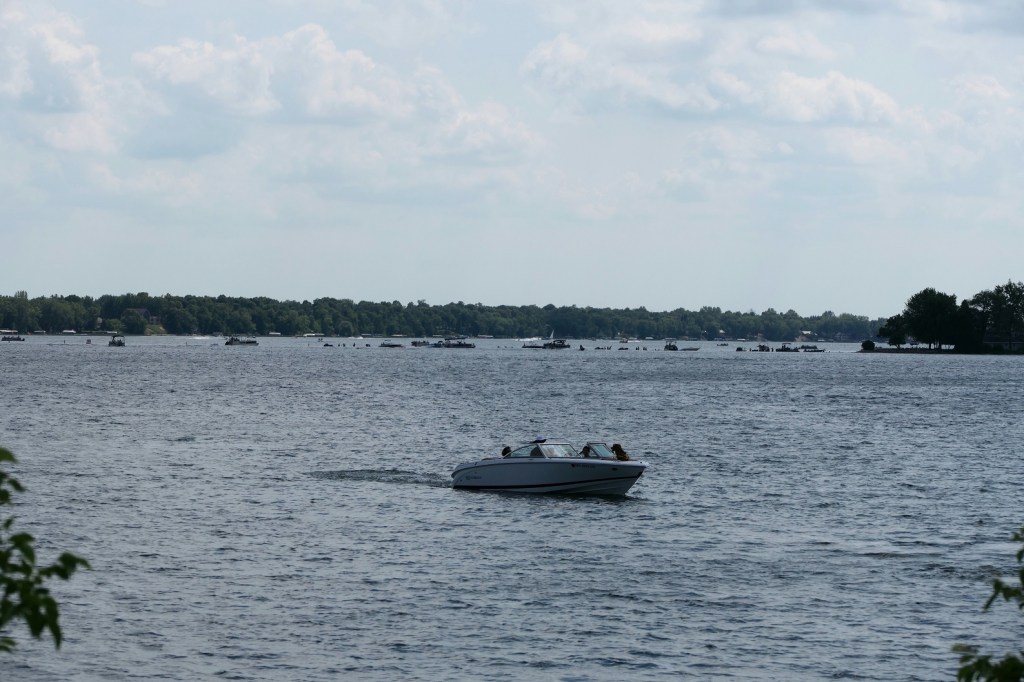 [Lots of boats between the points of Little and Big Darling – great sandy bottom swimming . . . ]