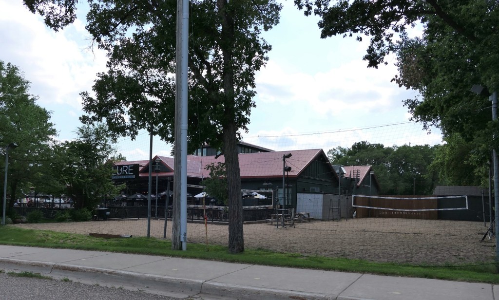 [Vacant volleyball courts at The Lure – well, it’s 93 degrees, for Pete’s sake . . . ]