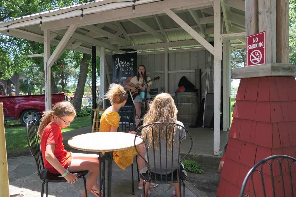 [There were a substantial group of tweens in the crowd – obviously Josie fans. They kept going by the stage and putting tips in her jar. I asked Josie to ask her fans to drop their parents’ business cards in as well. We’re always looking for donors for Theatre L’Homme Dieu . . . ]