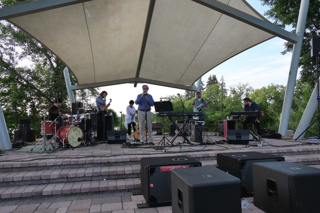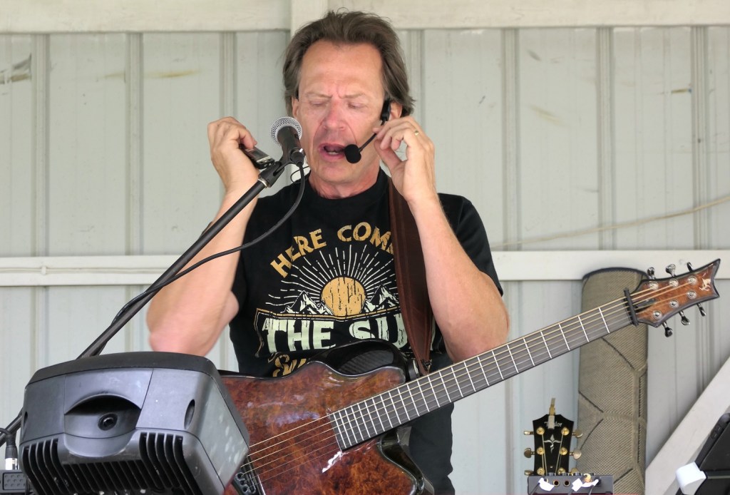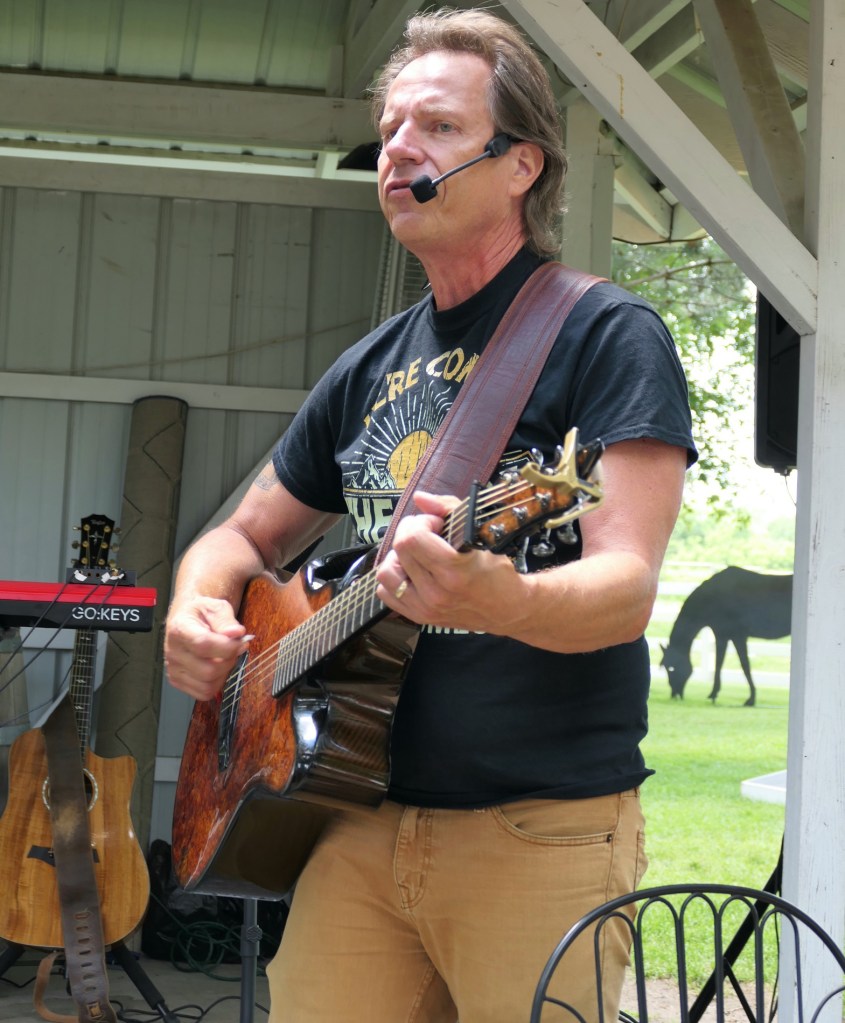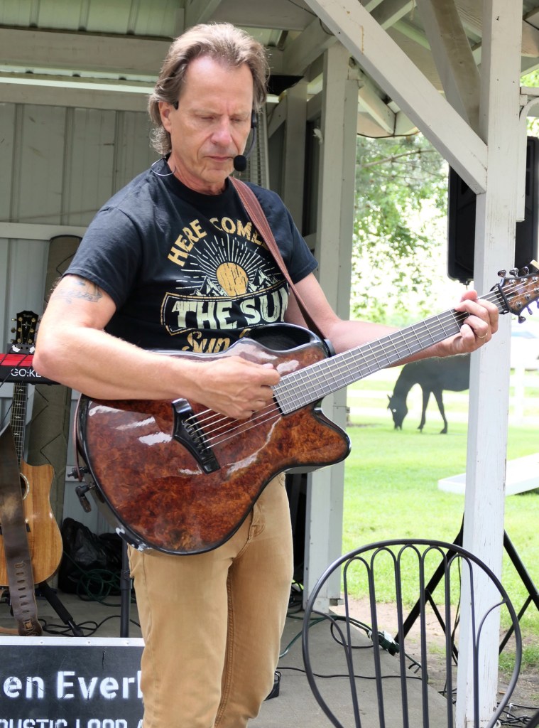 [Glen Everhart took the stage at Carlos Creek Winery. Glen has been driving from Blaine to Alexandria to perform for over 30 years. He estimates he has performed at Arrowwood over 400 times (used to be every Wednesday during the season, now four times a year). Yet this was his very first time at the winery . . . ]