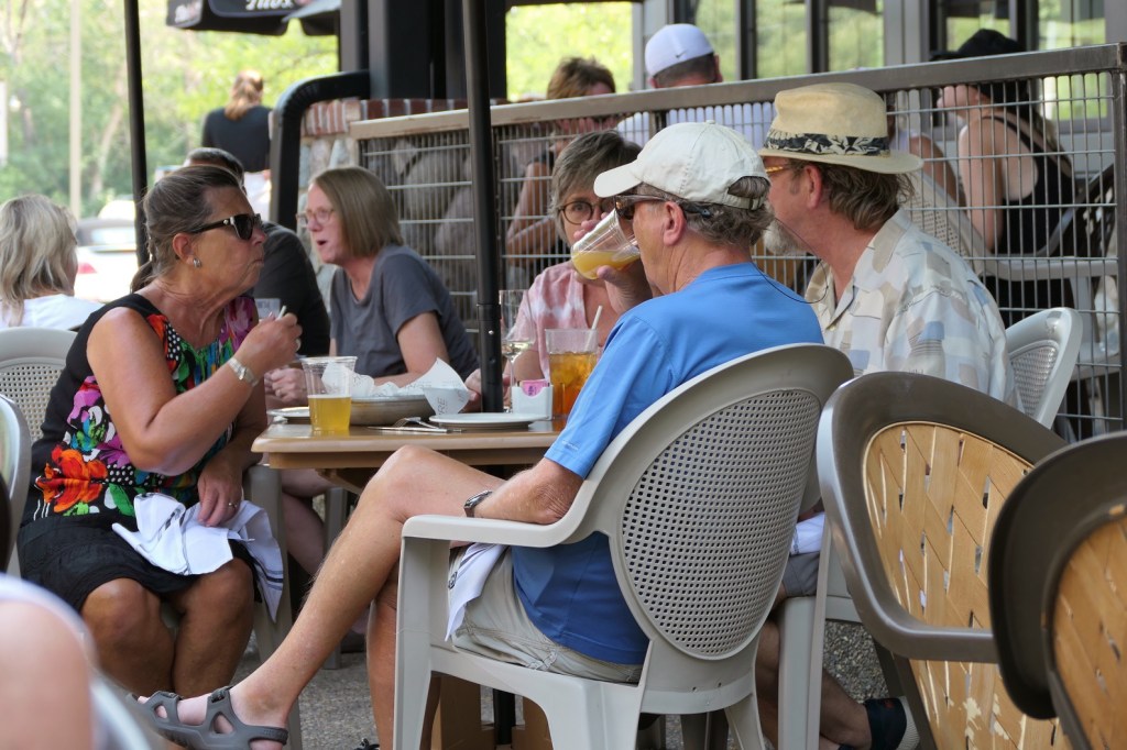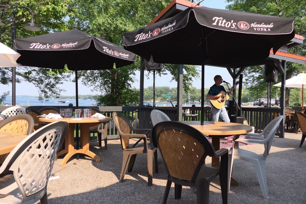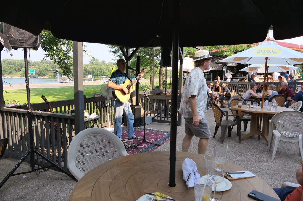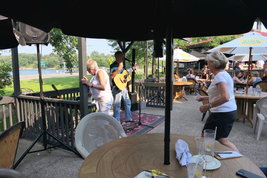 [And then it was on to The Lure, overlooking the boating action on Lake Le Homme Dieu . . . ]