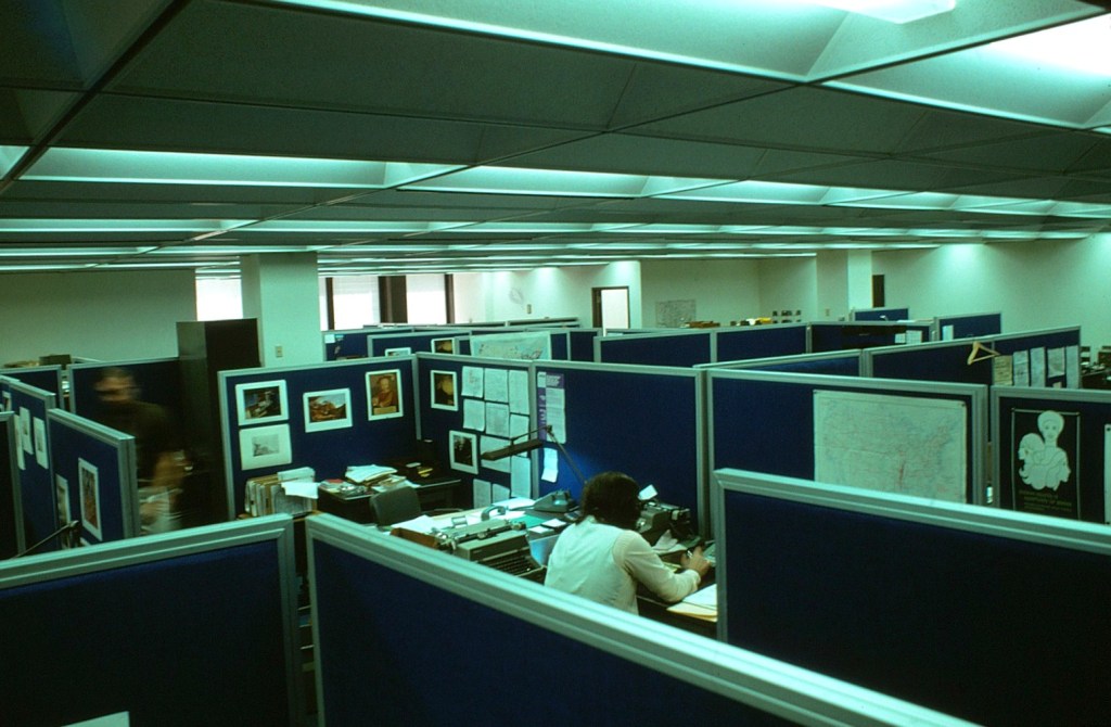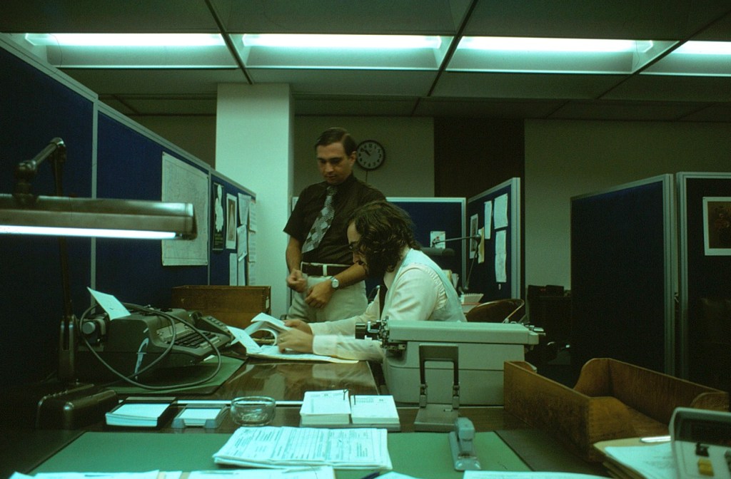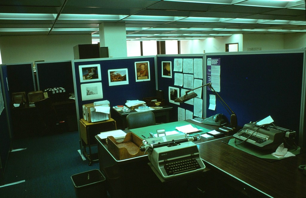 [We moved into the brand new Frances Perkins Department of Labor (DOL) building in May 1975. This was my first “room” . . . ]
