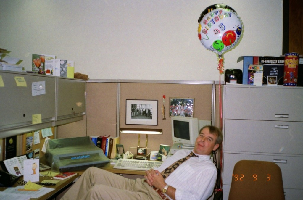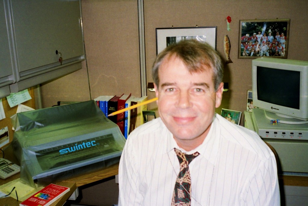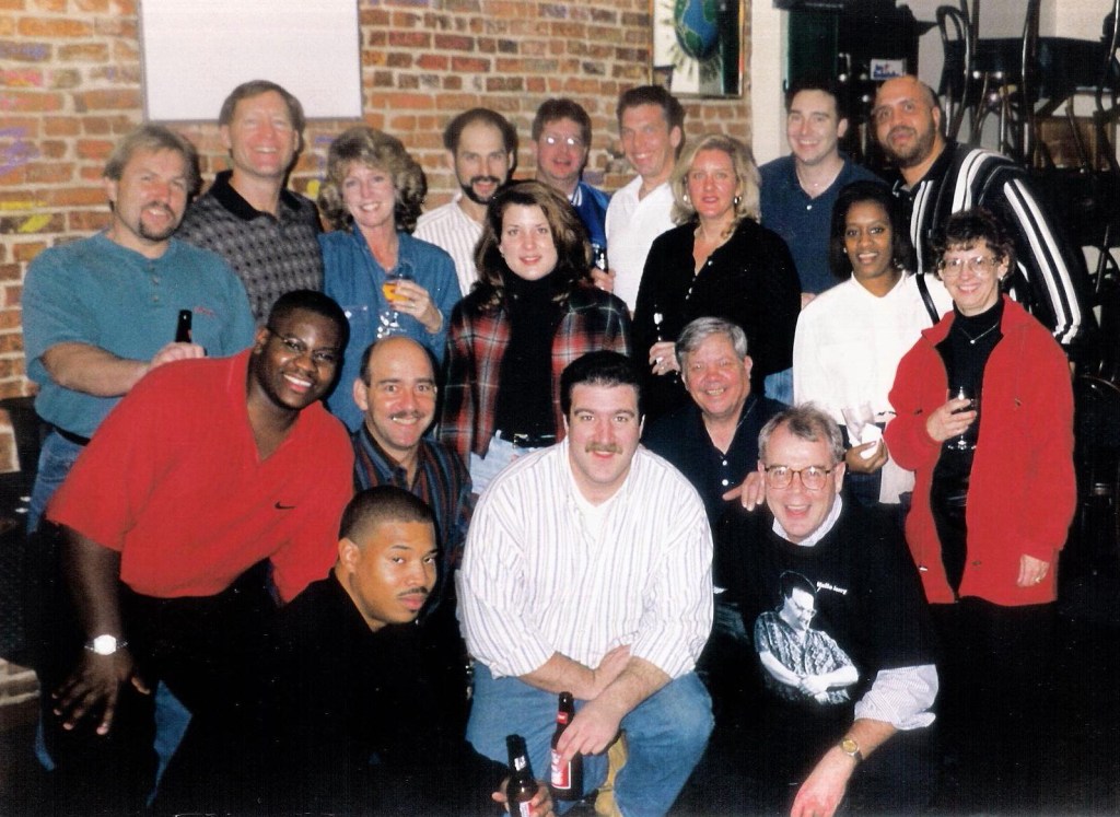 [Pretty much the last group I worked with, 1995 – still in touch with Libby (top) and Tim (kneeling next to me), despite each being my frontline supervisor . . . ]